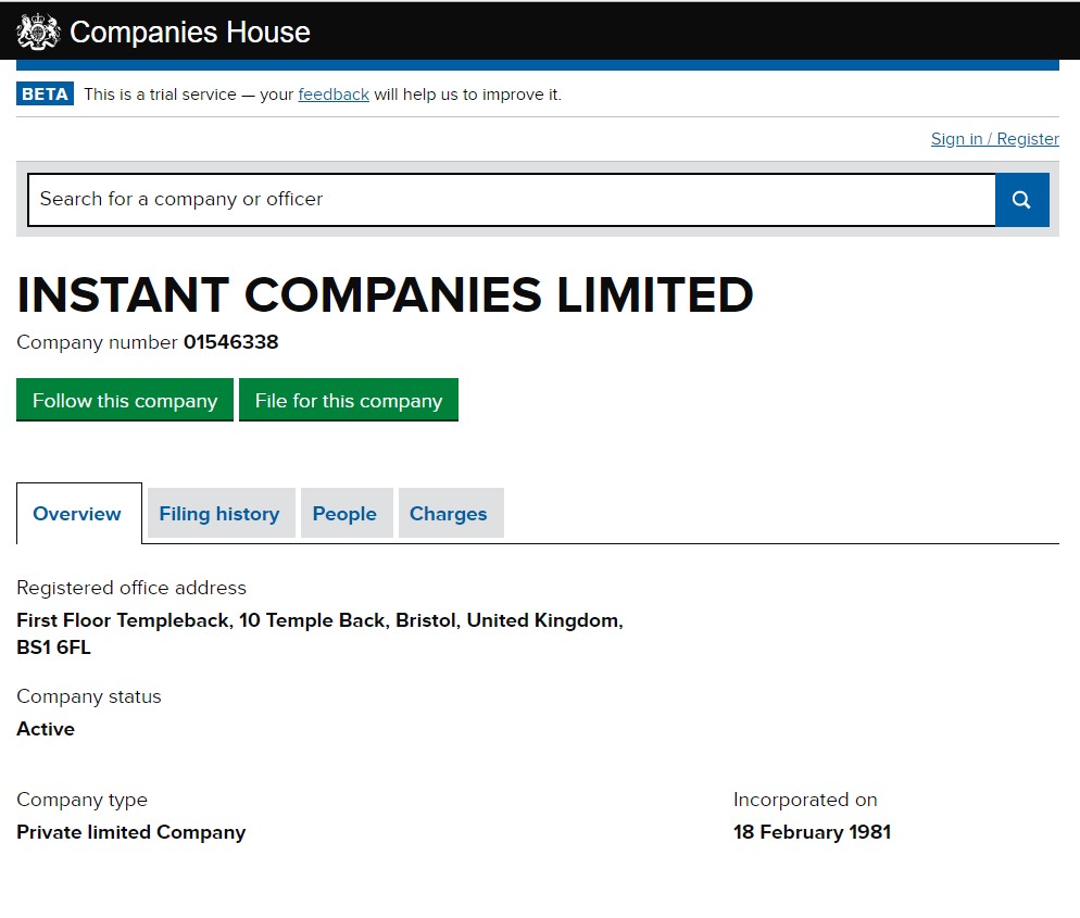 Product Name: Companies house beta search online