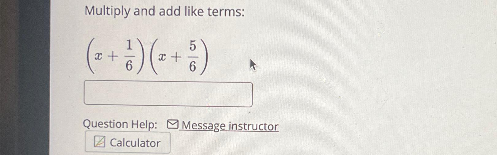 Combine Like Terms online, Combining Like Terms Free Math Help online, Like and Unlike Algebraic Terms Definition and Examples online, Like and Unlike Algebraic Terms Definition Solved Examples online, Algebra Calculator MathPapa online, How to Simplify Equations video lessons examples solutions online, GCSE Revision Video 1 Collecting Like Terms online, Simplifying Expressions video lessons examples solutions online, Like Terms in Math Definition Methods Examples Video online, Combining Like Terms Calculator How to Combine like terms online, Collecting Like Terms GCSE Maths Steps Examples Worksheet online, PPT Solve Multi step Equations PowerPoint Presentation free online, Combining Like Terms Definition Examples Lesson Study online, Combining Like Terms Passy s World of Mathematics online, Combine Like Terms Calculator The Best Free Online Calculator online, Combine Like Terms Calculator Check Steps wise Process Here online, Do Now No Calculator Solve the following equations Like Terms online, Solving multi step equations combining like terms Math online, Combining Like Terms Calculator YouTube online, Collecting Like Terms Worksheets Practice Questions and Answers online, Combining like terms with rational coefficients Khan Academy online, Combining Like Terms Worksheets online, Combine Like Terms Anchor Chart Poster Math interactive notebook online, Combining like terms worksheet TPT online, Simplify Like Terms with Exam Style Questions A Guide for online, Complete the table to show the steps for combining like terms online, How the heck did they get 80 000 after combining like terms 2 online, Solved Multiply and add like terms x 16 x 56 Question Chegg online, Combine like terms and simplify calculator online, Algebra Calculator Microsoft Math Solver online, Complete the table to combine like terms when adding Expression online, Answered 2 Simplifying Radical Expressions bartleby online, Collecting Like Terms Worksheets Practice Questions and Answers online, Air Apps Calculator Air App offers step by step explanations for online, Polynomial Calculator Video online.
