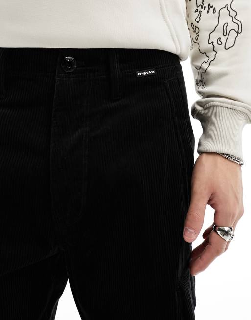 G star corduroy pants online, G Star renato straight leg cargo trousers in black cord ASOS online