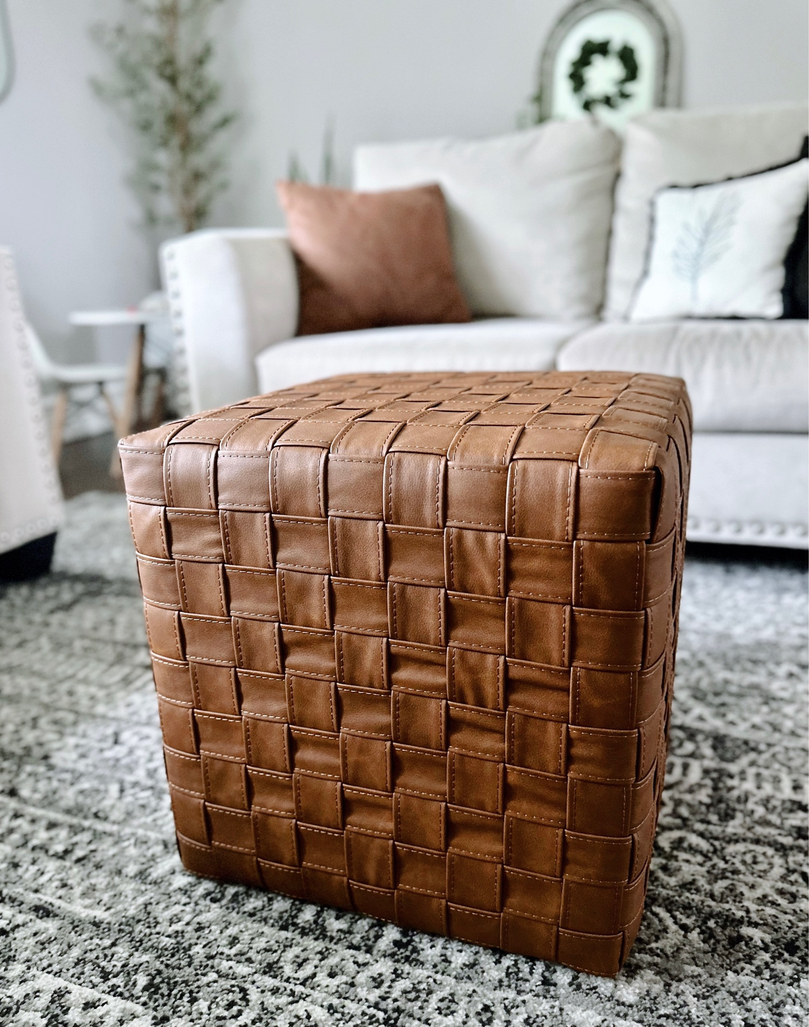Product Name: Leather cube ottoman pottery barn online