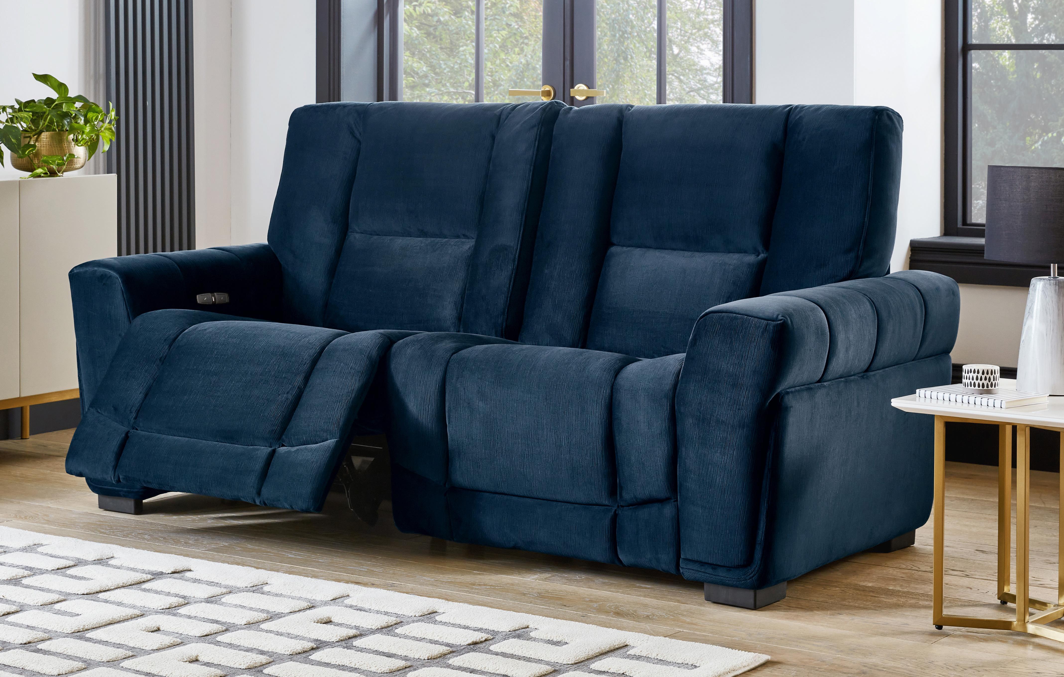 Product Name: Navy blue reclining sofa set online