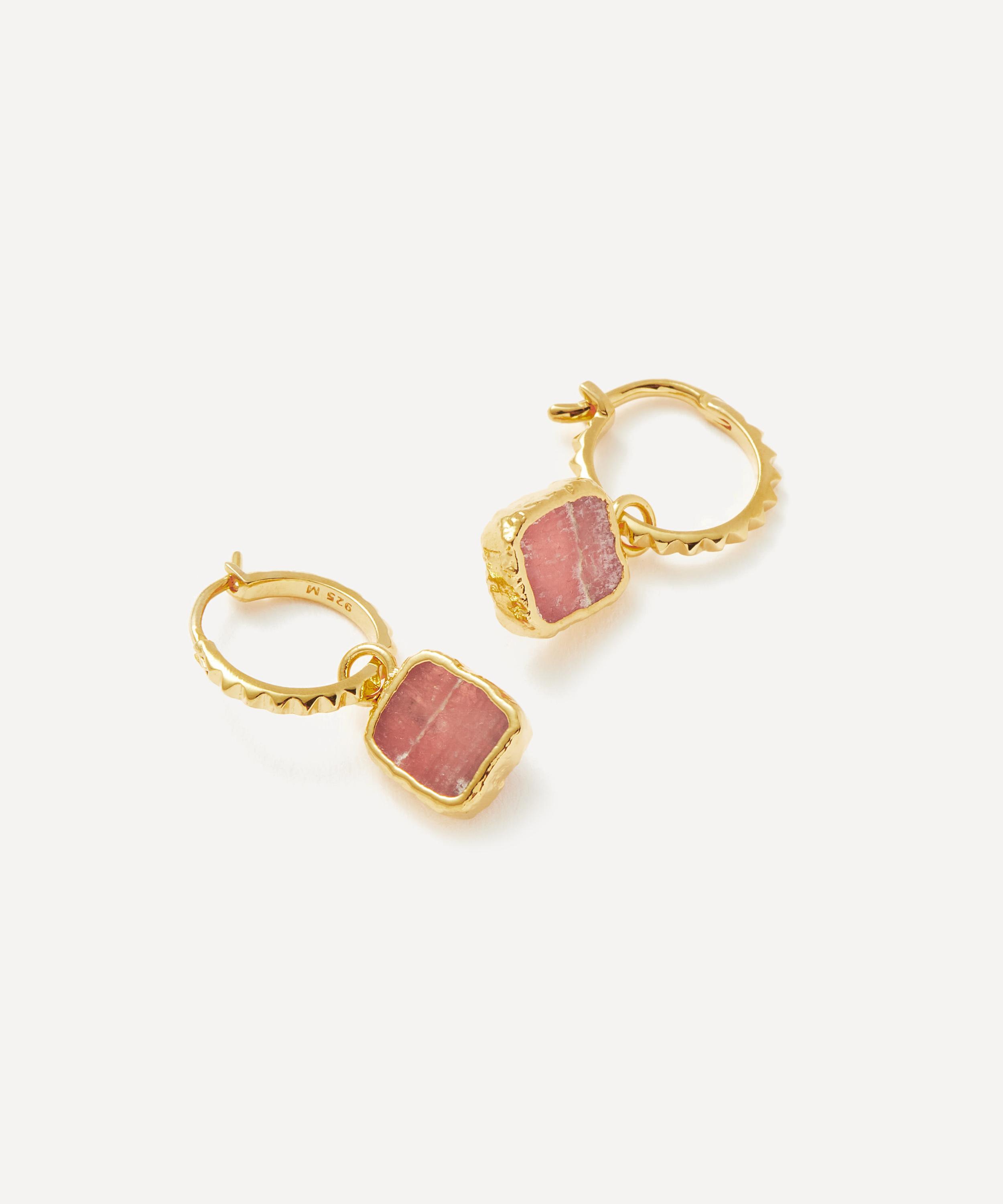 Product Name: Rhodochrosite gold mini pyramid charm hoop earrings online