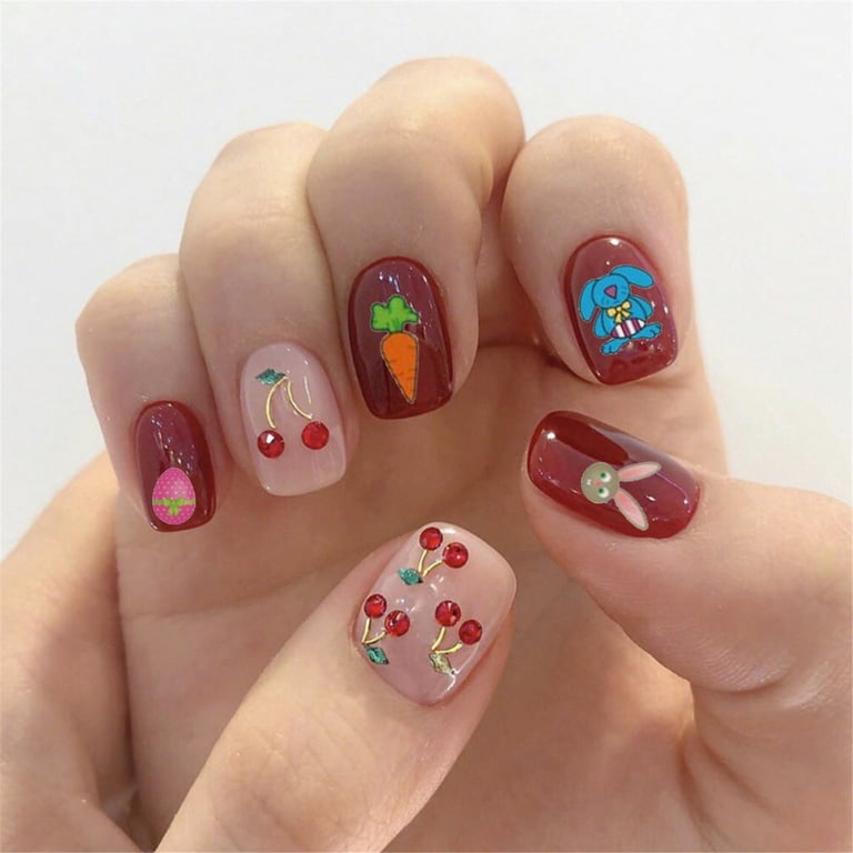 12Pcs Lovely Rabbit Easter Nail Art Stickers Kawaii Animals Carrot