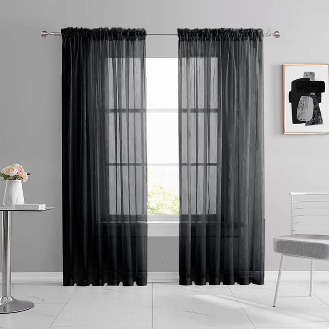 • Slot Top Voile Curtain Panel Black sheer curtains net woven